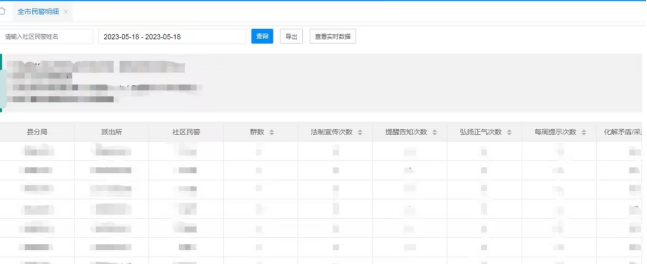 民警可选择推送类型(法制宣传、弘扬正气、提醒告知)下达通知,选择推送的内容、时间、范围一键提交一键审批,系统自动统计形成数据列表及结果导出;社区民警选择任务类型(化解矛盾、安全防范、便民服务、异常报告)一键提交上报,系统自动统计任务统计数据列表及结果导出;系统自动抓取建群数、群居民数、消息数,自动生成基础数据统计列表;按照省厅考核规则,自动生成全市警民议事厅月报。