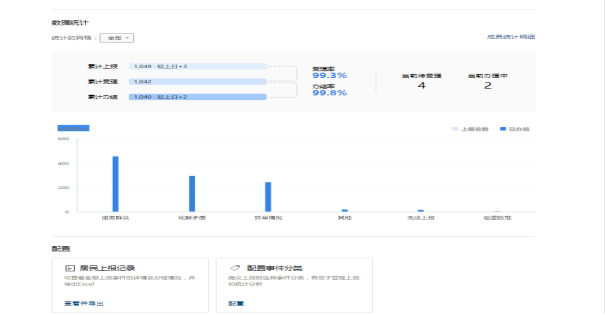 实现民警办理事件一键上报、一键统计;议事群内办理事件结合会话存档事件办结内容作为佐证对比;对于非工作处理范围内的事件,可以进行上报上级单位,上级单位办结完成后会自动反馈至民警,民警可以通知居民该事件办理结果。